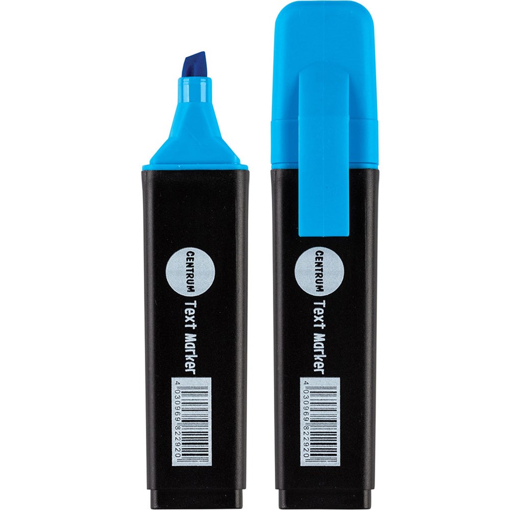 Маркер - текстовыделитель Centrum предназначен для маркировки рукописного и печатного текста. Маркер представлен в пластиковом корпусе черного цвета. Цвет колпачка соответсвует цвету чернил. Чернила не имеют резкого химического запаха, мгновенно высыхают, не отпечатываясь на обраной стороне. Устойчивы к выцветанию, выделенная область не теряет первоночальной яркости со временем. Скошенный наконечник позволяет проводить линии 1-5 мм. Цвет чернил - голубой.
