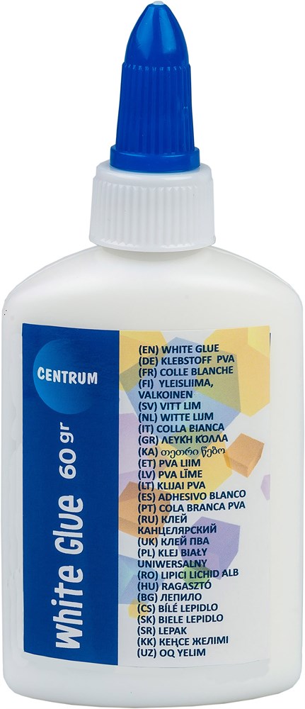 Клей ПВА Centrum найдет свое применение в офисной работе, на уроках труда и в домашнем использовании. Такой незаменимый в быту и канцелярии, надежный помощник для быстрого склеивания бумаги, картона и фотобумаги. Благодаря основе ПВА, в составе клея только клеящее вещество и вода. Клей абсолютно не токсичен и безопасен при контакте с кожей рук. Клеящее вещество без выраженного химического запаха, в жидком виде имеет белый цвет, но при высыхании используемая поверхность приобретает прозрачный оттенок. Удобный дозатор обеспечивает равномерное нанесение клея, может распределяться тонкой линией или каплями.Не требует особых условий транспортировки. Хранить при температуре не ниже 0⁰ С.Объем - 60 грамм.