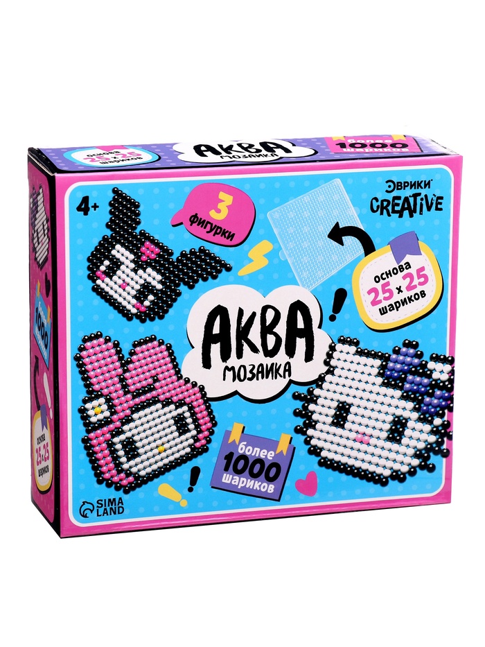 С аквамозаикой «Китти» ребёнок соберёт 3 объёмные фигурки из шариков-пикселей. Детали плотно скрепляются друг с другом. С поделками можно играть или украсить интерьер.