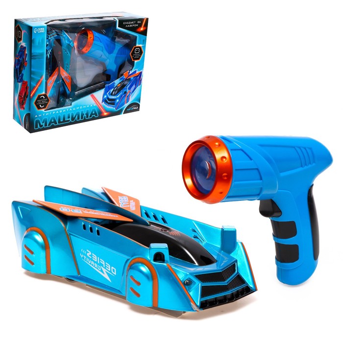 Антигравитационная машинка LASER, управление лазером, работает от аккумулятора, ездит по стенам, цвет синий, уценка