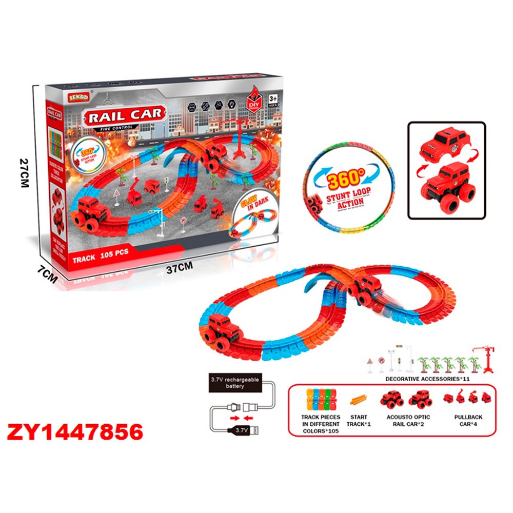Трек собирается из деталей, которые позволяют собирать разные конфигурации дороги, даже петли.