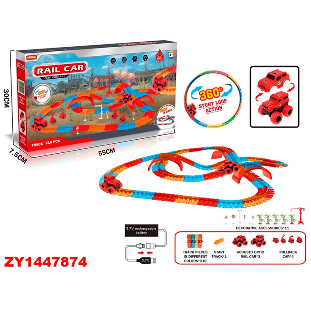 Трек собирается из деталей, которые позволяют собирать разные конфигурации дороги, даже петли.