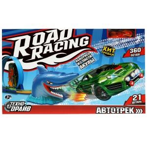 Игрушка пластик ROAD RACING автотрек с динозавром. 1 машинка, кор. Технопарк