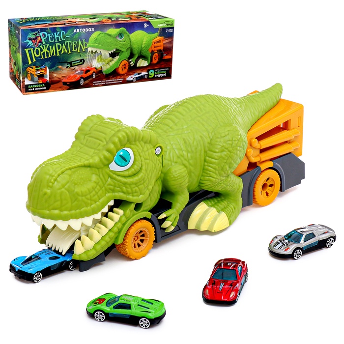 - Динозавр с пастью, которая открывается и «съедает» машины – представь, сколько интересных историй можно придумать!