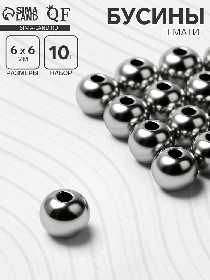Бусина «Гематит» d=6 мм, (набор 10 г), цвет серебро