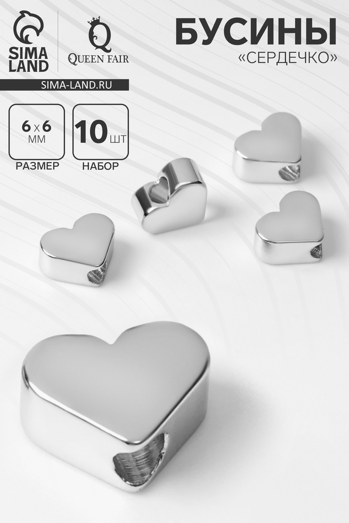 Бусина-разделитель родир. "Сердечко", 6×6 мм, d(вн.)=2 мм, медь, цвет серебро (набор 10 шт.) — это изысканный и стильный элемент для создания уникальных украшений, который добавит романтический акцент и утонченность вашим изделиям. Бусины в виде сердечек идеально подойдут для использования в качестве разделителей в браслетах, ожерельях и серьгах, придавая вашим аксессуарам элегантность и оригинальность.