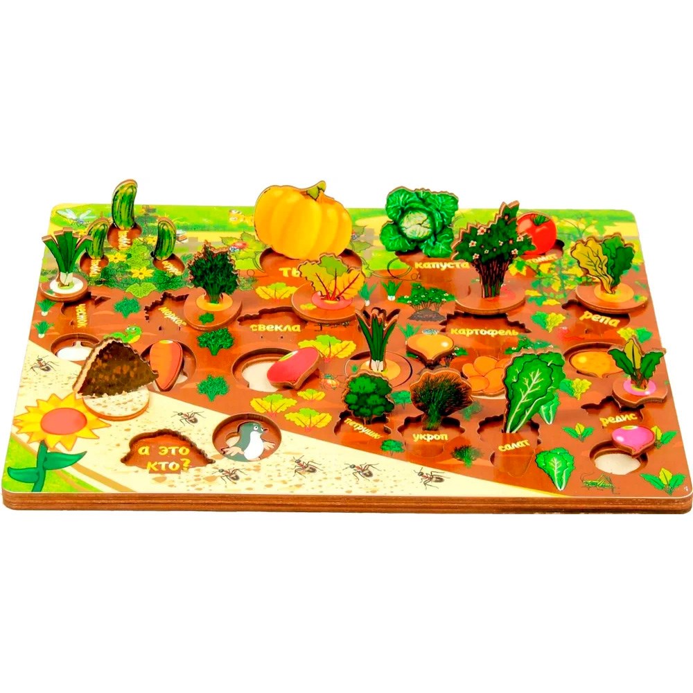 Деревянная 3D Развивающая доска Овощи на грядке.Огород 34 дет. 7907 /25/