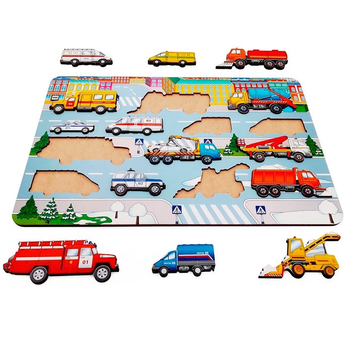 Деревянная Рамка вкладыш Спецтехника 14 деталей 8524 /35/
