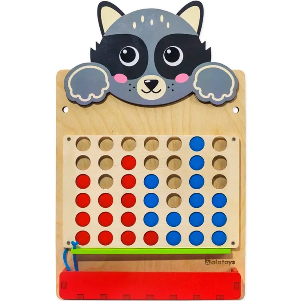 Суть игры: игроки по очереди вставляют фишки в отверстия. Задача - заполнить ряд первым.