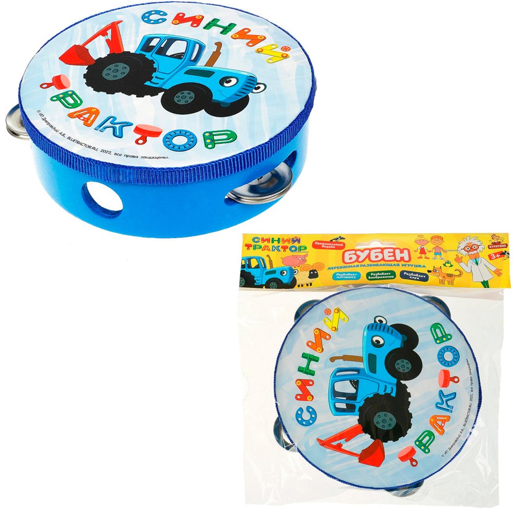 Деревянный Бубен СИНИЙ ТРАКТОР Буратино STR43