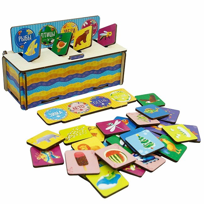 Деревянный сортер состоит из ящичка с прорезями и деревянных карточек, которые в них необходимо вставлять, привильно подобрав по тематике. Цвет фона послужит подсказкой. Цветные элементы достаточно крупные. Игра познакомит с различными животныи, а также будет способствовать развитию мелкой моторики. Сделанные из высококачественной древесины, они не деформируются и легко берутся в руки. Сборка головоломки способствует развитию внимания, логического мышления, усидчивости и подарит массу положительных эмоций. Все детали данной игры изготовлены из экологически чистых материалов.