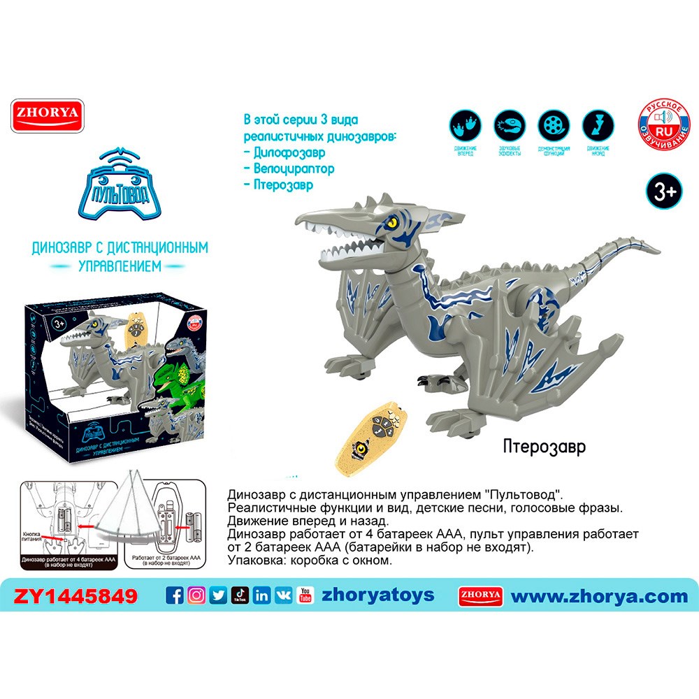 Комплектация: динозавр - 1 шт, пульт управления -1 шт