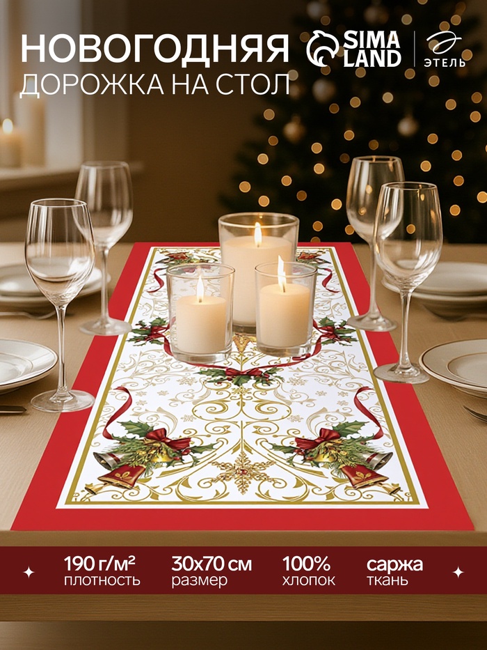 Дорожка на стол «Этель» Новогодняя сказка 30×70 ±3 см, 100% хлопок, саржа 190 г/м²