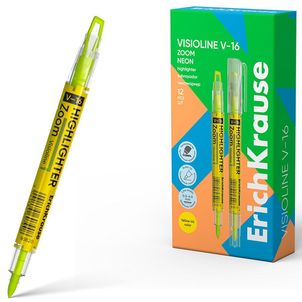 Двухсторонний текстмаркер желтый Visioline V-16 Zoom Neon 60820 /Erich Krause/
