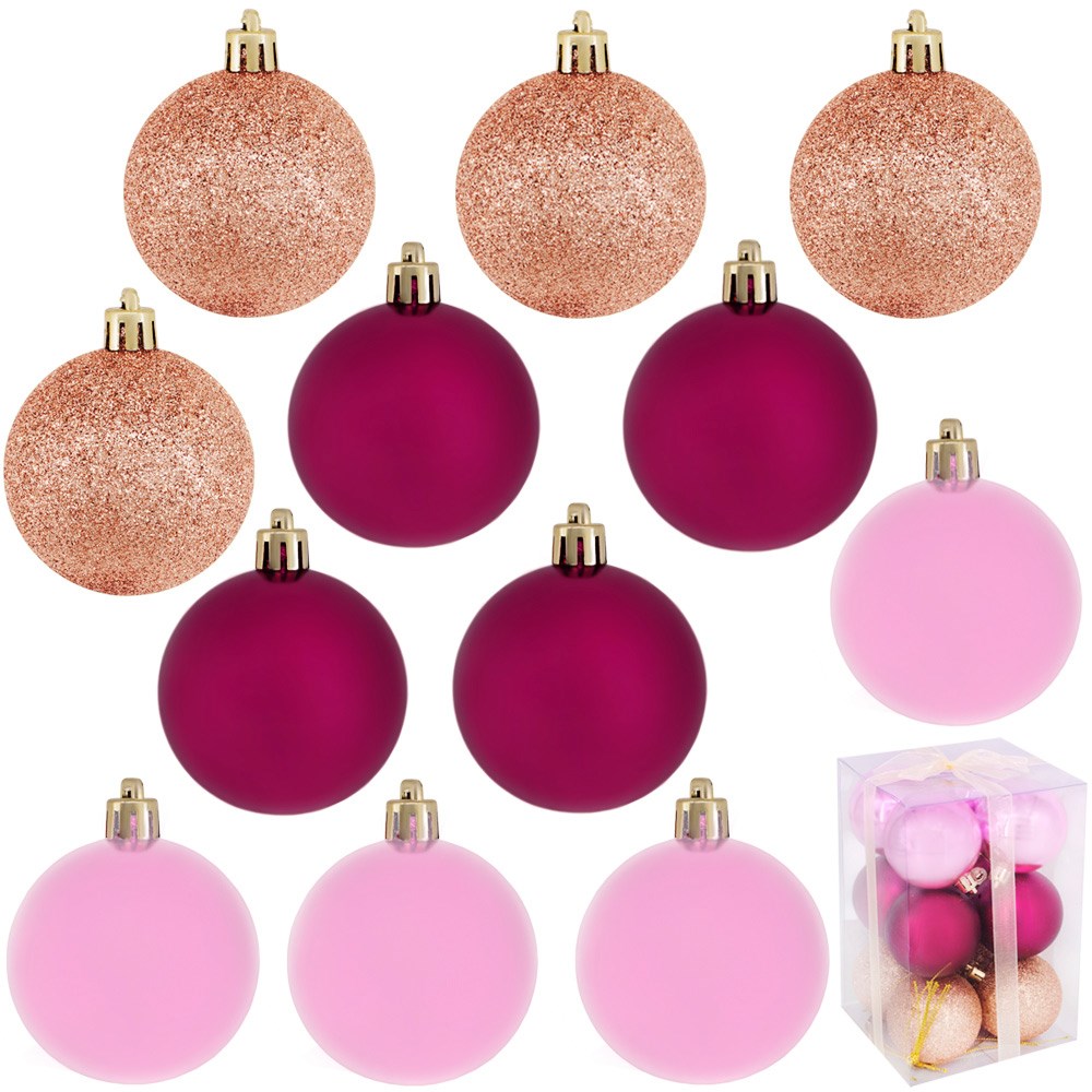 Елочный набор Шары роз., бордо, беж. 6 см 12шт. в кор. E-PT48412A СТОК
