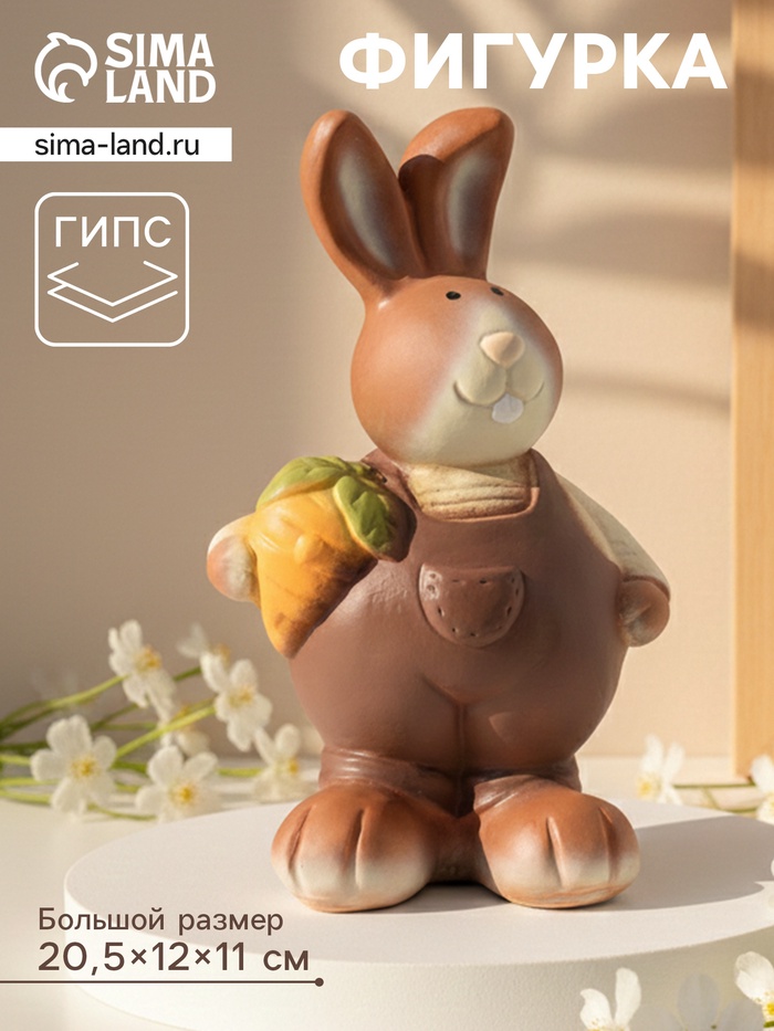 Фигурка гипс «Кролик-фермер», 20.5×12×11 см