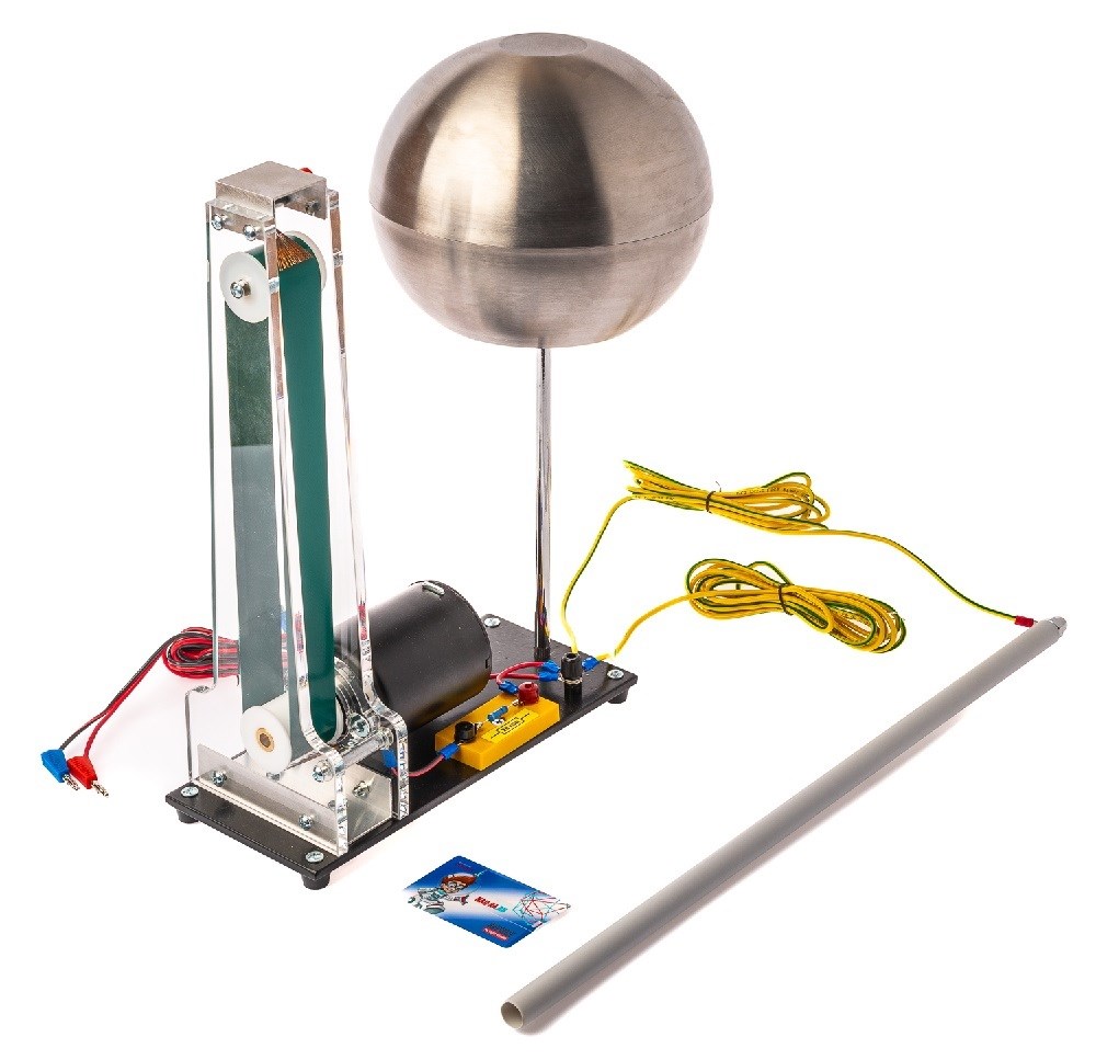- Заряжаемая до высокого напряжения металлическая сфера (съемная, для демонстрации устройства генератора Ван-де-Граафа)