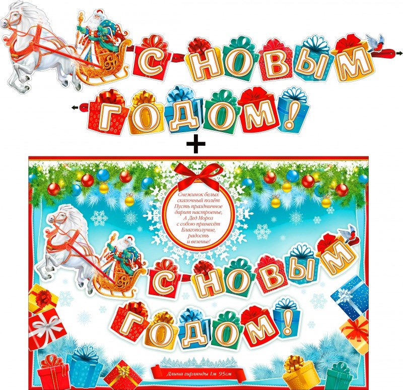 Гирлянда картонная с блестками с плакатом. Плакат 500х345мм, гирлянда 220х15см.