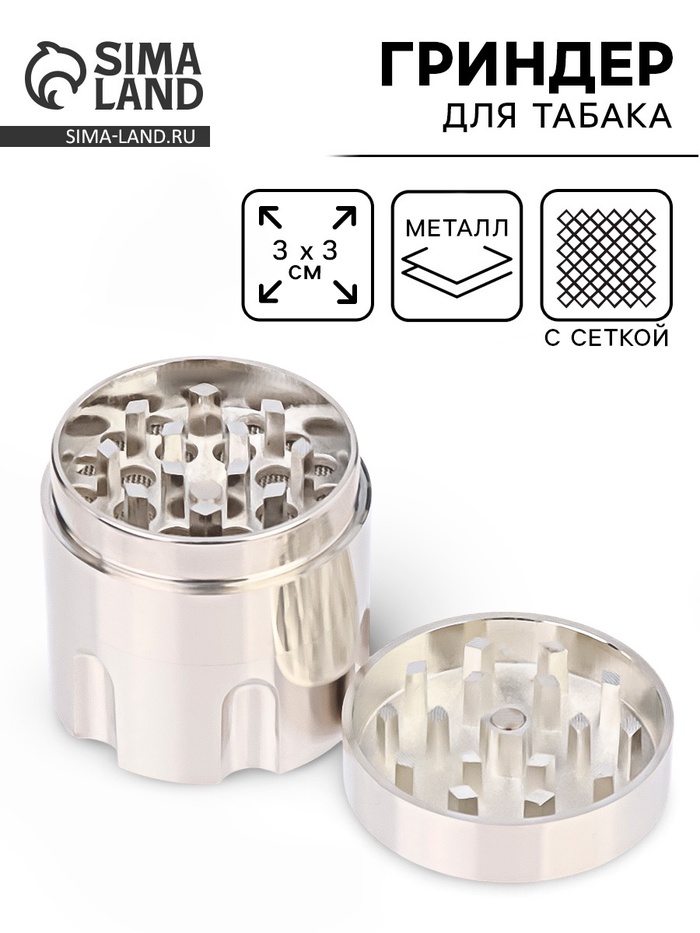 Гриндер для табака «Барабан для патронов», с ситом, 3×3 см, серебро