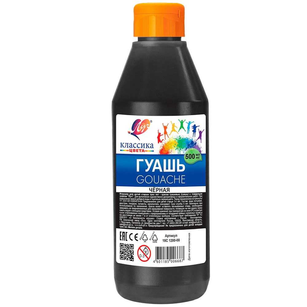 Гуашь 500 мл. Черная 18С 1200-08 /ЛУЧ/.