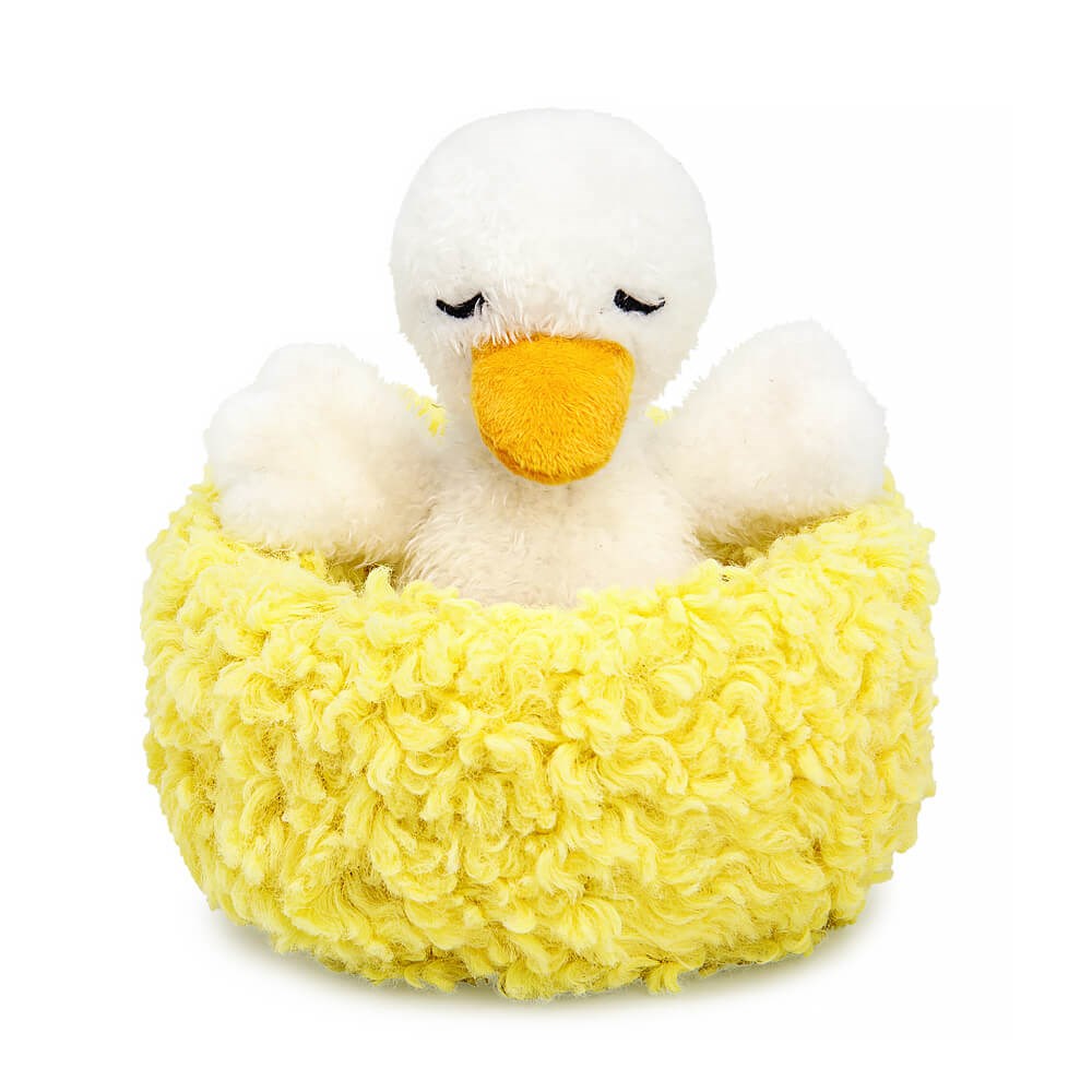 )Маленький Гусик в жёлтом гнездышке. Гусик сшит из тактильно приятного меха с коротким ворсом белого цвета, мягкий клювик выполнен из охристого софта, а хвостик из длинноворсового меха. Уютное гнездышко из кудрявого меха жёлтого цвета.