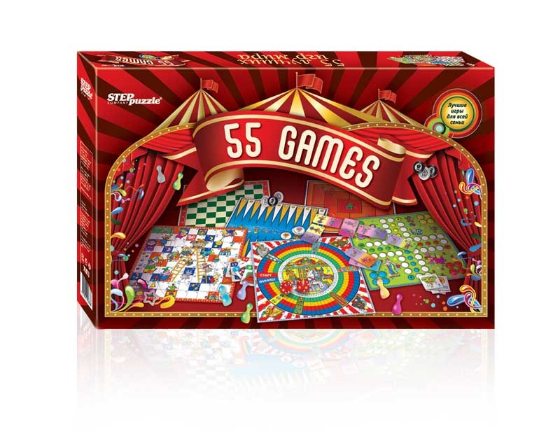 Игра "55 лучших игр мира" – 55 игр для всей семьи в одной коробке.