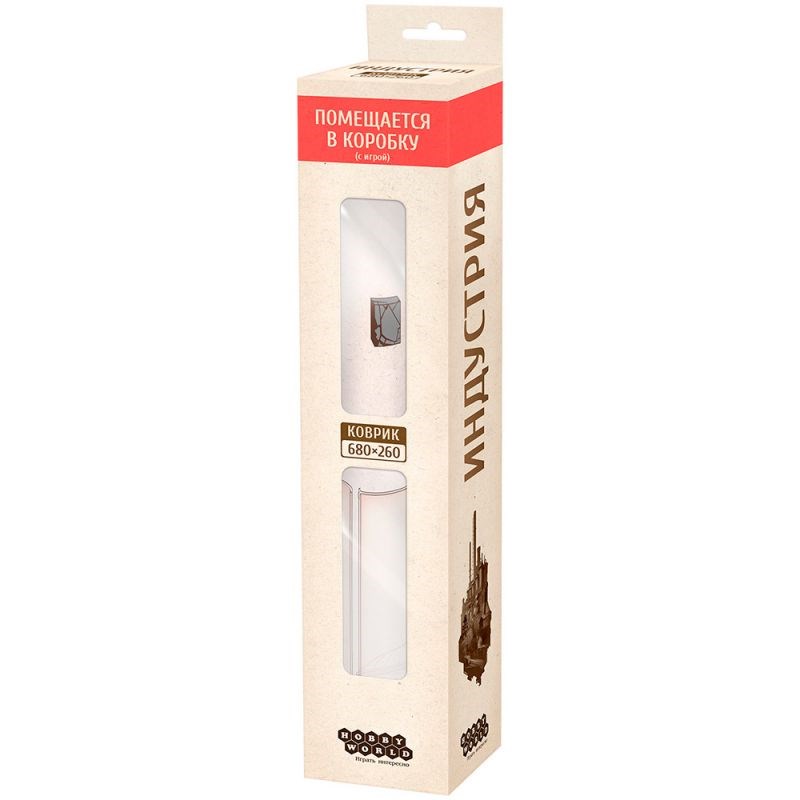 В коробке вы найдёте огромный (680x260 мм) неопреновый коврик, который используется в настольной игре "Индустрия". Настольная игра в эту коробку не входит.