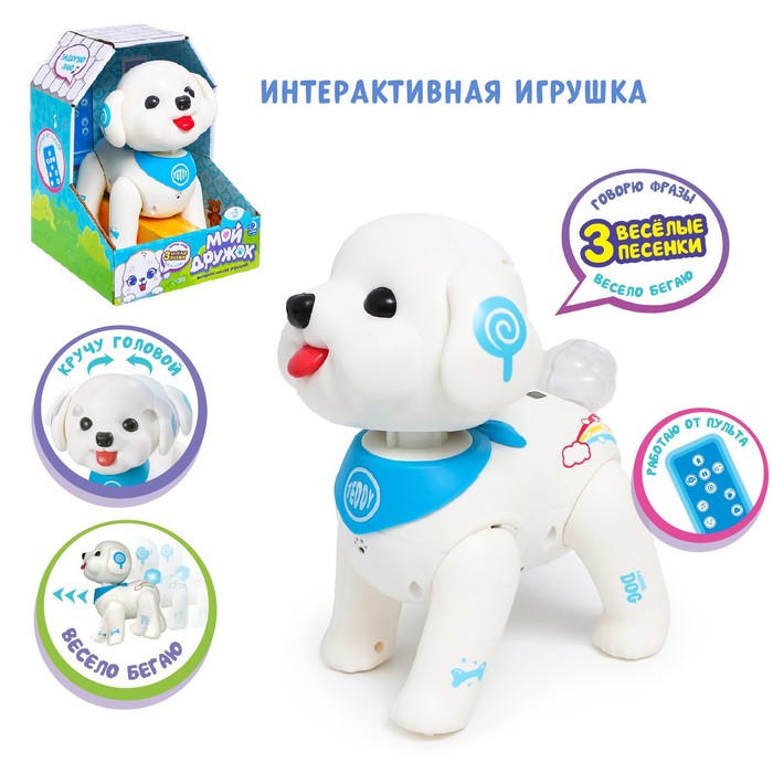 )Интерактивная игрушка «Мой дружок» станет настоящим другом для вашего ребёнка. Очаровательная собачка на пульте управления умеет ходить, бегать, лаять, вилять хвостом и реагировать на хлопки. Она подарит вашему малышу море веселья и поможет развить важные навыки.