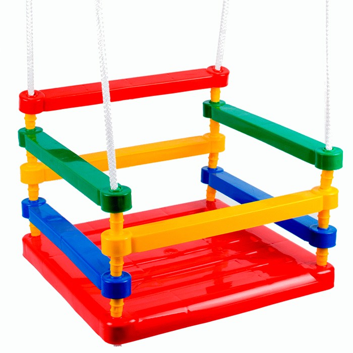 Все малыши любят качаться на качелях - это и весело, и иногда помогает успокоить непоседу. Качели представляют собой подвесную модель, изготовленную из высокопрочного и износостойкого яркого цветного пластика. Они крепятся на металлические кольца и оборудованы надежными высокопрочными шнурами. Сзади имеется спинка. Спереди у качелей расположен подвижный ограничитель, который можно поднять, чтобы усадить ребенка. Качели можно крепить дома, на даче, во дворе. Изделие имеет небольшой вес, а также его можно легко снимать, чтобы переносить или хранить. С каждой стороны качелей есть несколько разноцветных бусинок, которые сразу привлекут внимание ребенка. Также изделие станет прекрасным тренажером для вестибулярного аппарата малыша и координации движений.