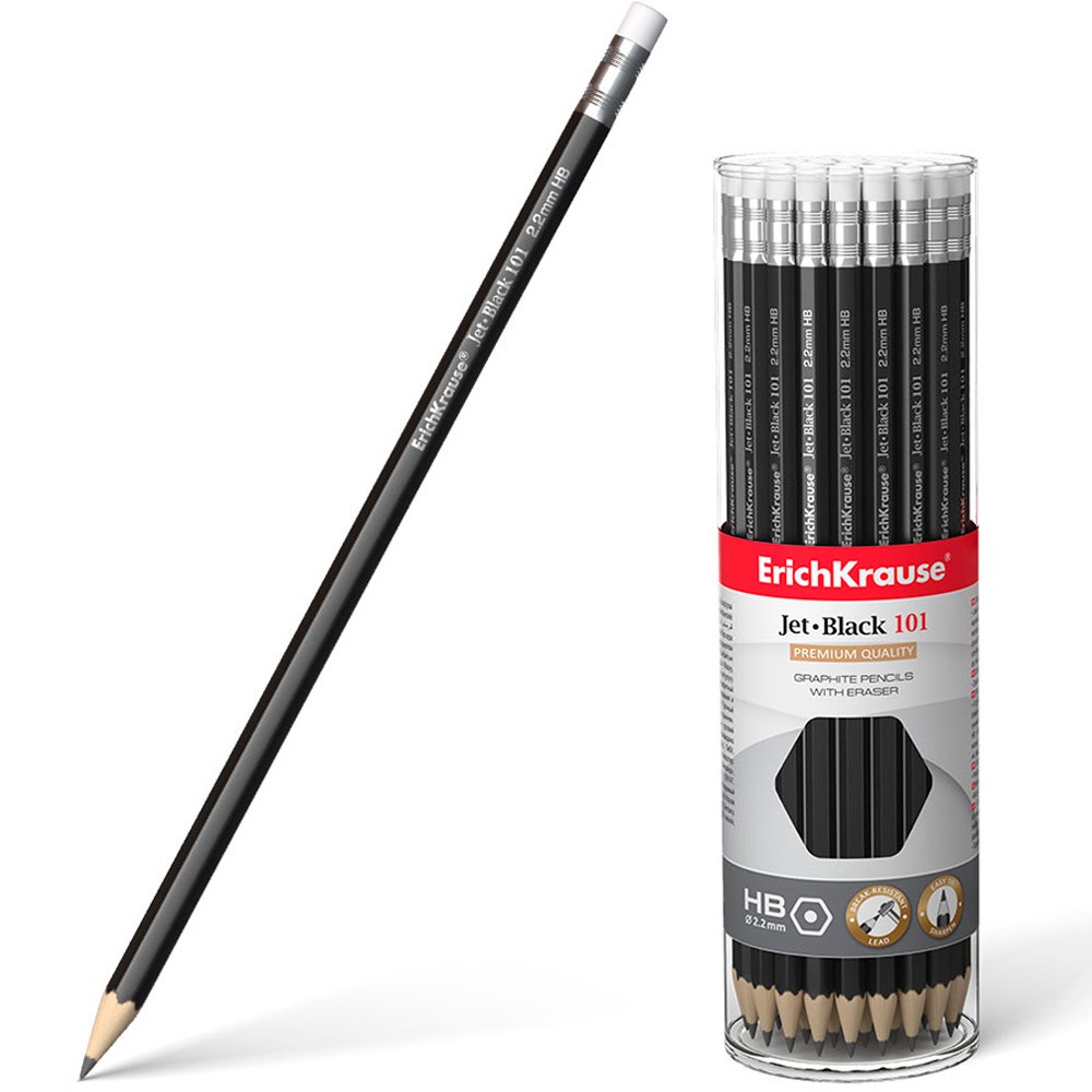Карандаш ч/гр Jet Black с ластиком, HB 45606 /Erich Krause/