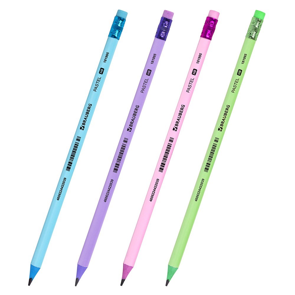 Карандаш ч/гр НВ "Pastel" с ластиком ассорти 181995 Brauberg