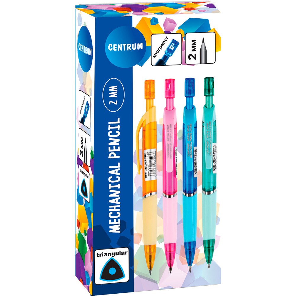 Карандаш механический 2 мм с точилкой встроенной в наконечник ассорти 87507