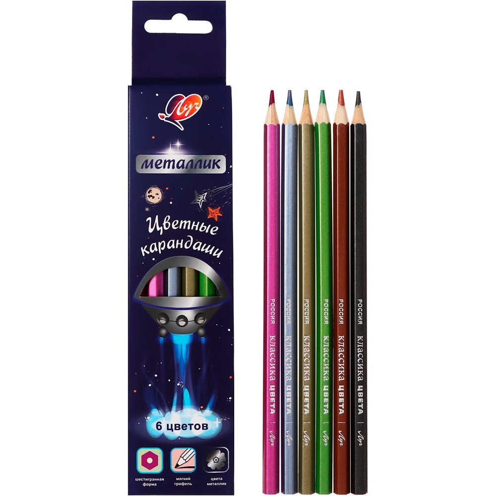 Карандаши цветные 6 цв. Фантазия МЕТАЛЛИК 33С 2192-08 ЛУЧ
