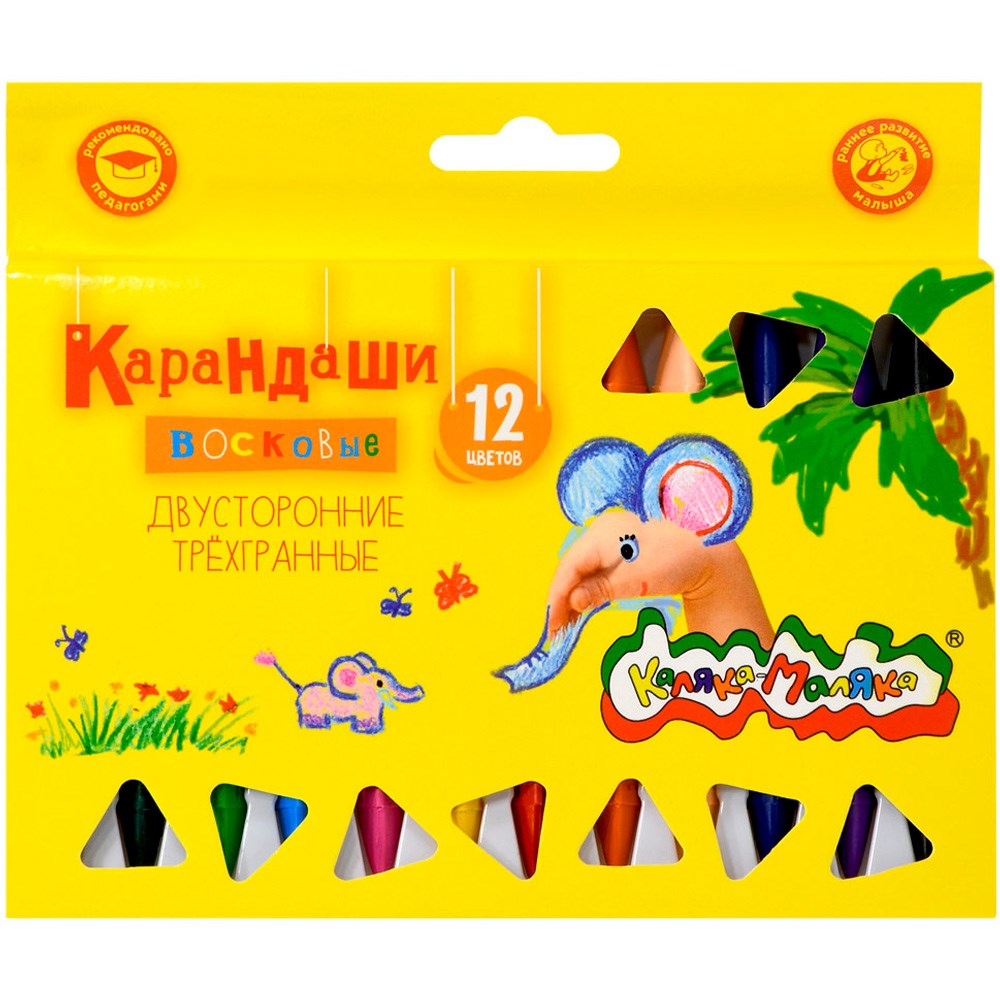 Карандаши восковые 12 цв. Каляка-маляка двухсторонние, трехгранные КПКМ12