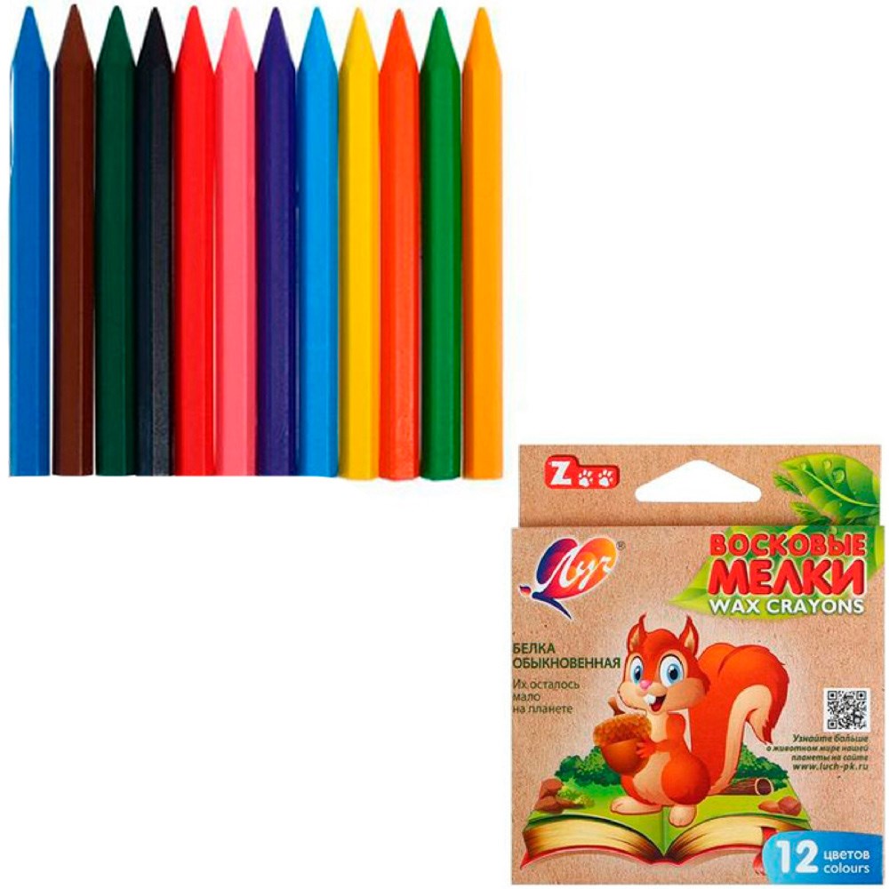 Карандаши восковые 12 цв. Zoo 12С865-08 /ЛУЧ/