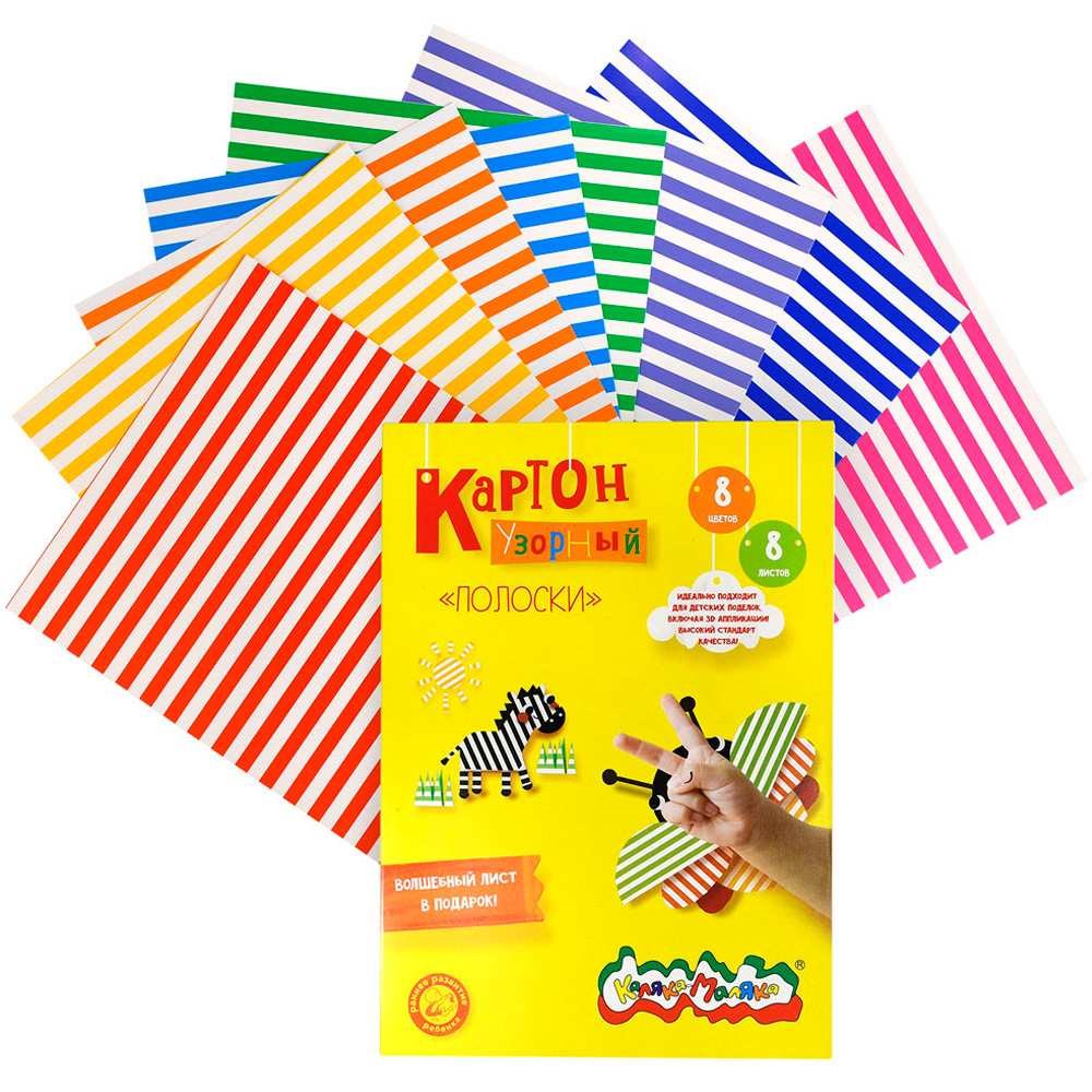 Картон цветной 8 л. 8 цв. А4 узорн. мелован. Каляка-маляка Полоски КЦУКМ-П