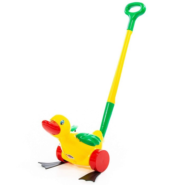 Яркая красочная каталка в виде уточки с ручкой для захвата и катания - замечательный подарок малышам. Игрушка не простая, а функциональная. Его можно катать за ручку-держатель, а уточка будет двигать лапками. Каталка станет прекрасным подарком малышу и надолго увлечет его. Разноцветные элементы помогут малышу научиться различать цвета. Игрушка выполнена из прочных и качественных материалов.