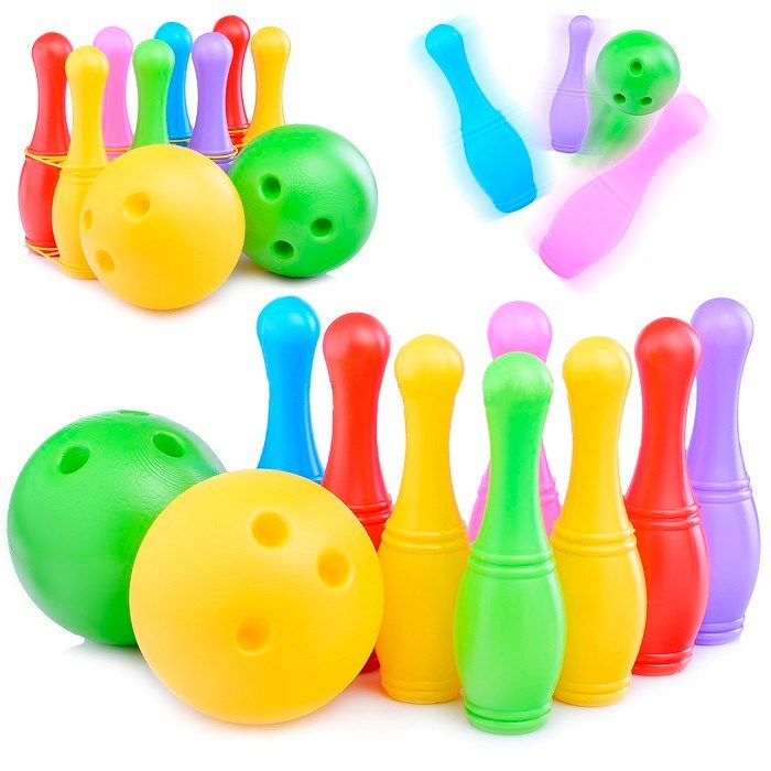 Набор детского боулинга поможет ребятам весело и с пользой провести время, тренируя ловкость и меткость. В комплект входят 8 цветных кеглей, а также два больших шара с отверстиями для пальцев. Кегли составляются в удобные ячейки для удобства хранения и переноски. Цвета набора представлены в ассортименте.
