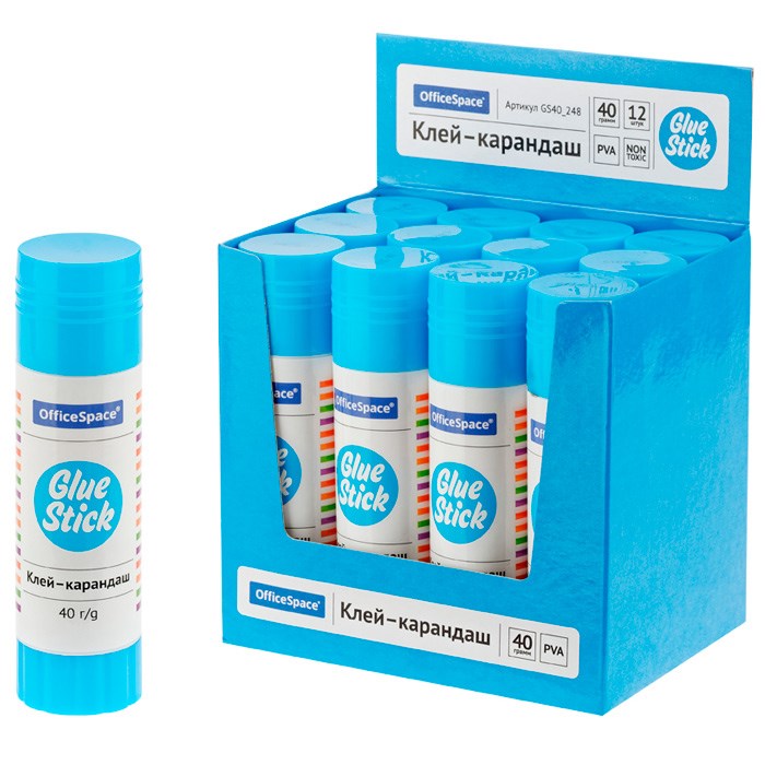 Клей-карандаш 40 гр. OfficeSpace, дисплей, ПВА 277058