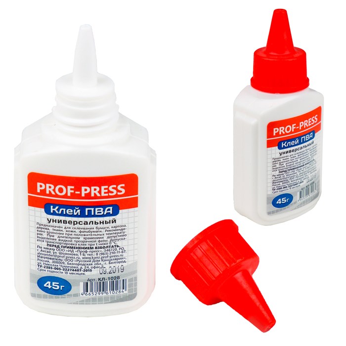 • Клей ПВА предназначен для склеивания бумаги, картона, ткани, фотографий, дерева и кожи.