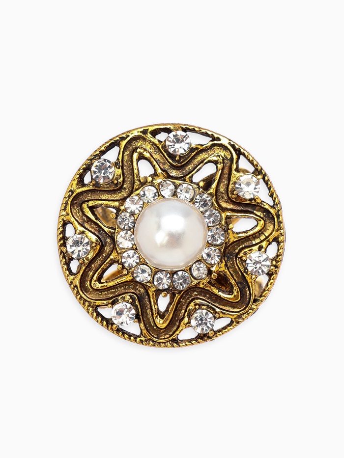 Кольцо для платка «Цветок в круге», белое в чернёном золоте