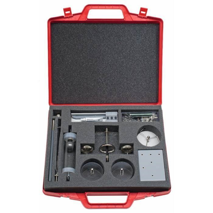 Все элементы хранятся в ячейках из пористого материала в прочном пластиковом чемодане размерами: 54 х 45 х 15 см.