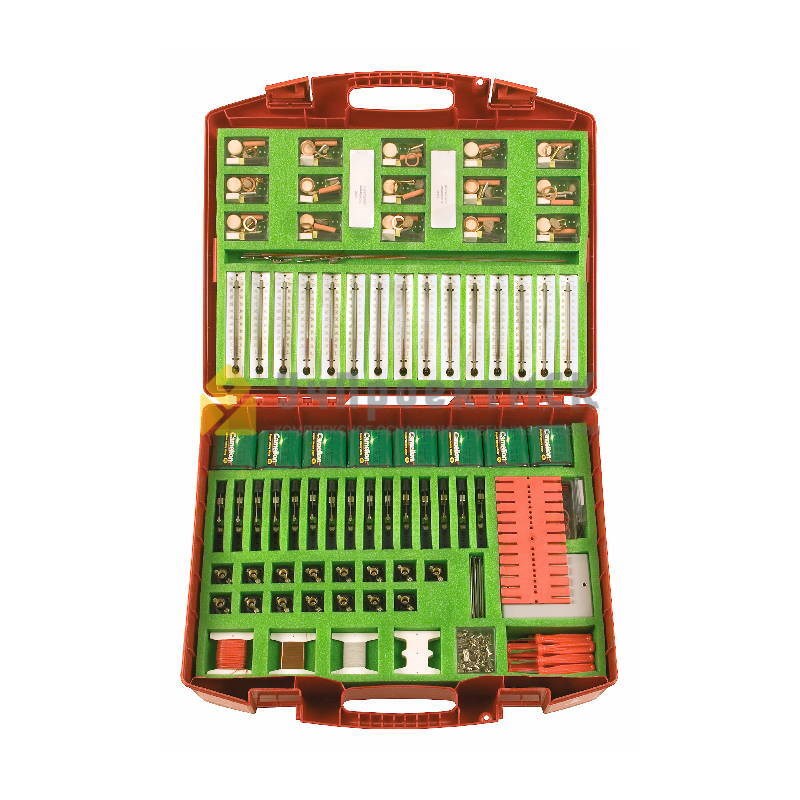 Комплект лабораторного оборудования для изучения составляющих электрических цепей, последовательное и параллельное соединение элементов цепи, получения с помощью тока тепла, света и механического движения, магнитного поля электрического тока, электромагнитов.