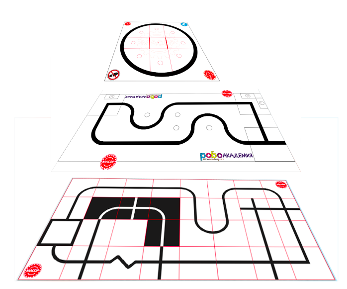 Второе поле размером не менее 2400х1200 мм представляет собой белое основание с нанесенной черной линией траектории шириной не более 40 мм и должно быть поделено на зоны: