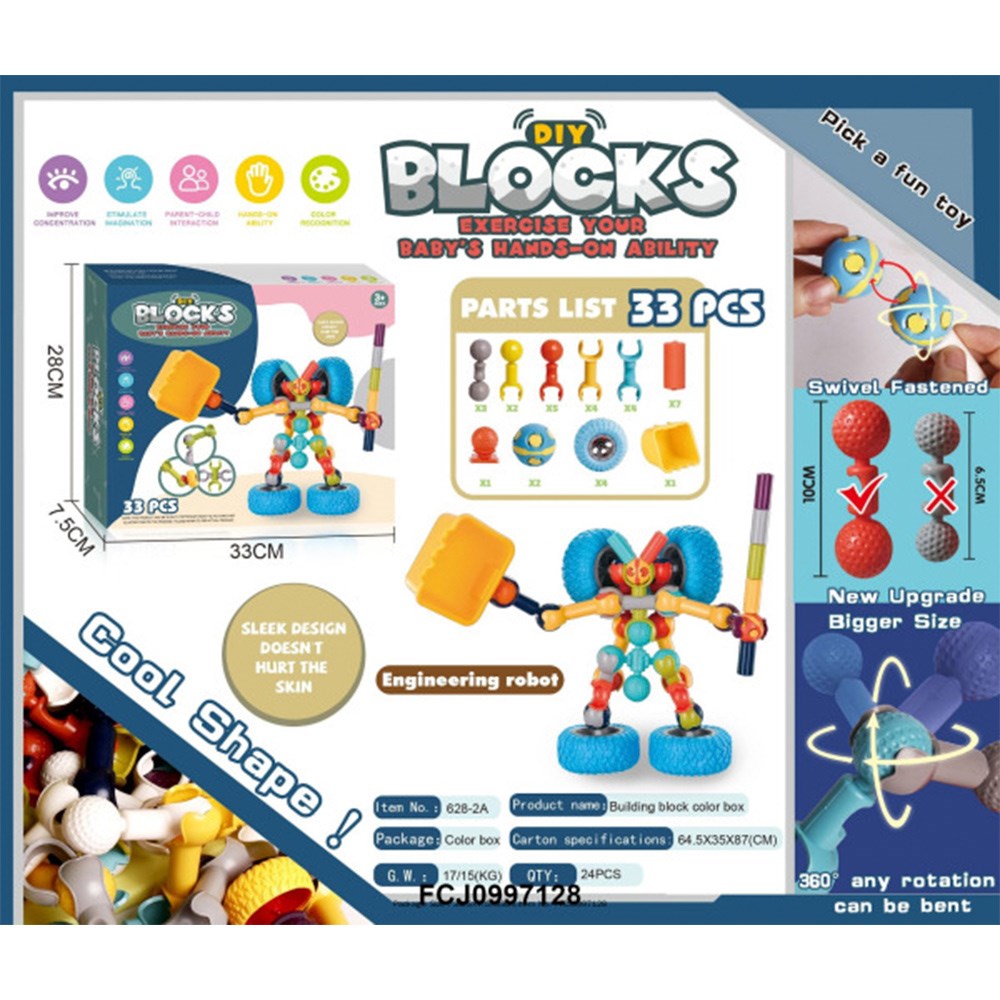 Конструктор 628-2A шарнирный 33 дет.Робот в кор.