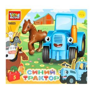 Конструктор большие кубики: СИНИЙ ТРАКТОР с лошадкой, 5 дет. Город мастеров