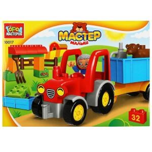 Конструктор большие кубики: ТРАКТОР с тележкой, 32 дет. Город мастеров
