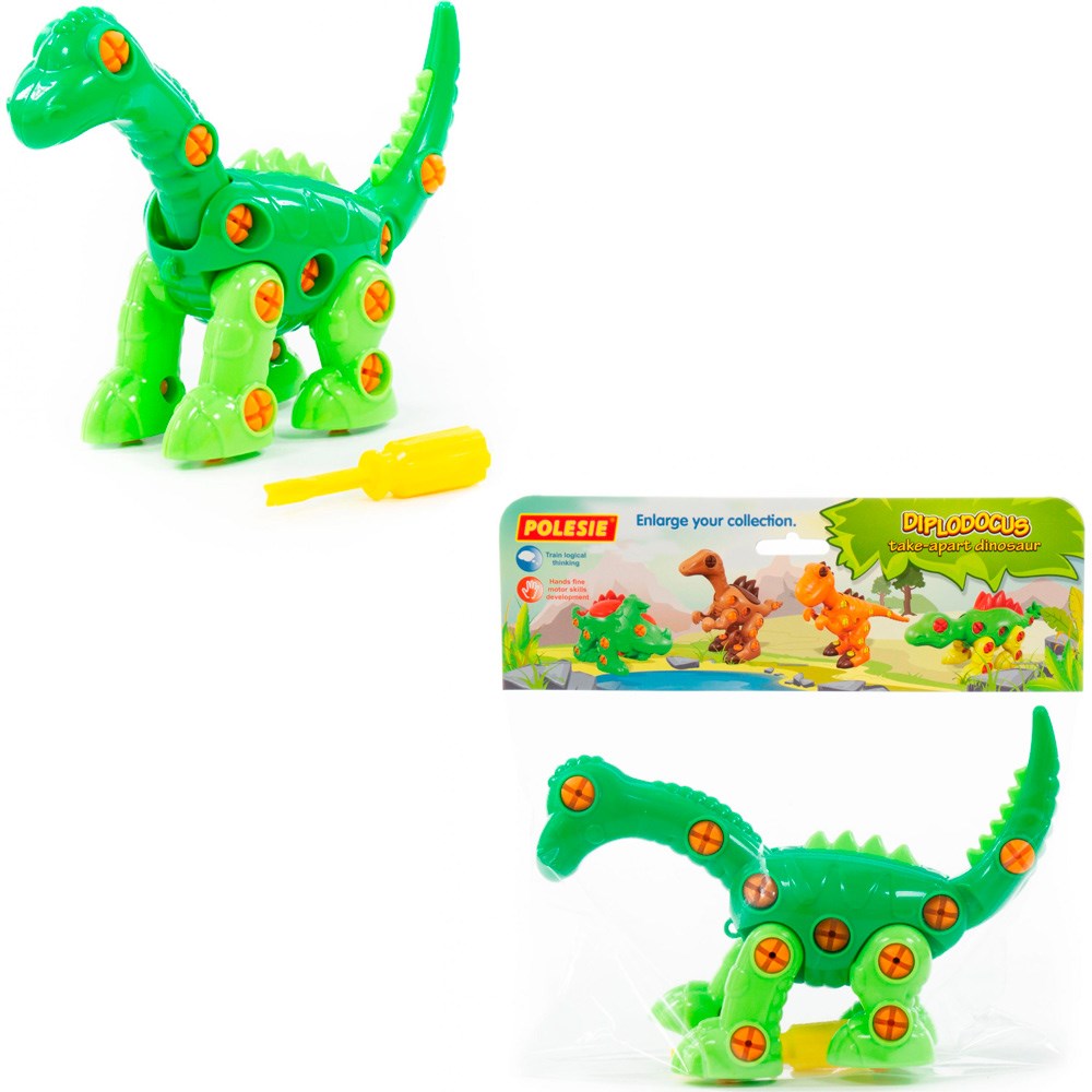 Конструктор-динозавр "Диплодок" - это увлекательное занятие для мальчиков и девочек. Игрушка представляет собой яркого динозавра, состоящего из деталей и пластиковых шурупов, также в комплекте есть крестовая отвертка, при помощи которой диплодока можно собрать и разобрать много раз. С готовой игрушкой ребенок сможет придумывать множество игровых сюжетов, развивающих фантазию, а процесс сборки-разборки фигурки позволит развить логическое мышление, сообразительность и навыки мелкой моторики. Изделие изготовлено из качественных безопасных материалов, не имеет острых краев и зазубрин. Цвета представлены в ассортименте.