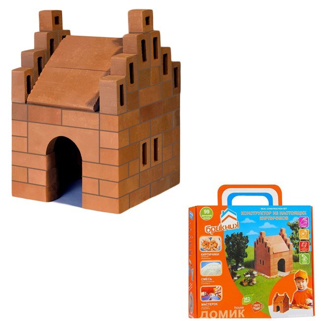 БрикНик – это развивающие конструкторы из экологически чистых, натуральных материалов. Все составляющие конструктора настоящие, уменьшенные в размере: кирпичики, арки, перекрытия (из обожженной глины), маленький удобный мастерок, цемент, разработанный специально для детей. Конструктор рассчитан на многократное перестраивание. Для того чтобы разобрать постройку, нужно оставить её в воде на 3-4 часа.