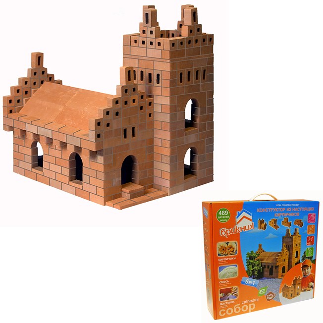 Комплект: мастерок, кирпичики, миска для разведения смеси, ингредиенты для смеси, подробная инструкция